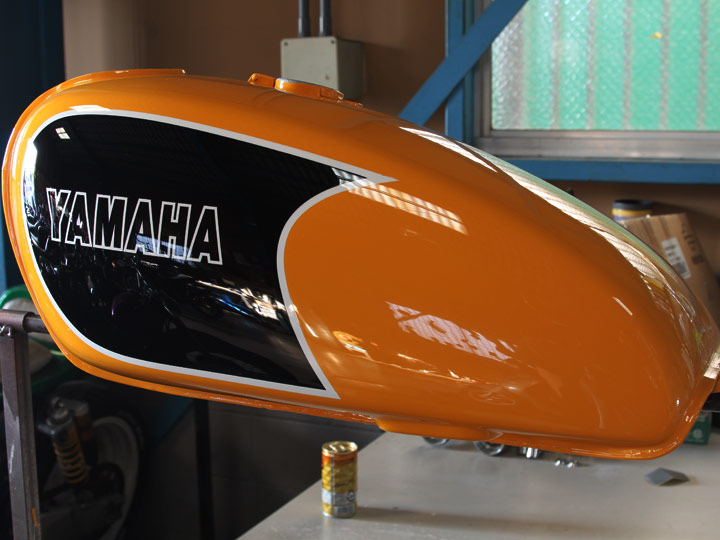 SR400 タンクペイント 2015.4.30 presto タンク塗装 私の最近の流行りは・・・ 山菜採りです 元々好きなのでハマってしまいました コシアブラ・・美味しいんですよ 知っているお客さんは1人だけでした 色々作りましたがやっぱ天ぷらですかね 美味しい作り方もお客さんから聞いたし今度試してみます 春の楽しみが1つ増えました えっと・・・本題 今回は春らしい爽やかなタンクです イエロー系ってとても難しいんですよ 黄色の車を見ると思わずじっくり見てしまいます クリヤは極厚で仕上げました