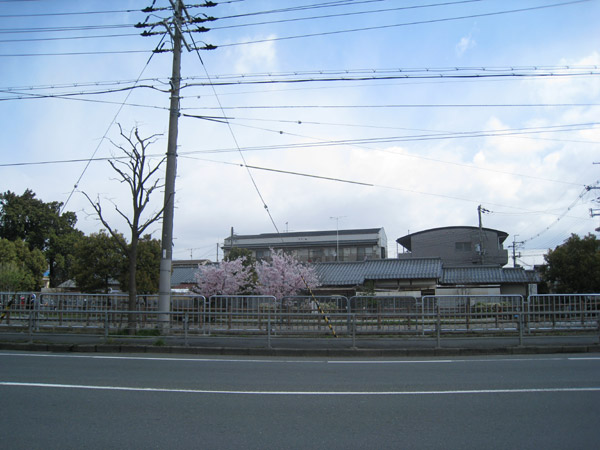普段はただの道に見えますがこの季節だけ鮮やかな桜が3本開花します