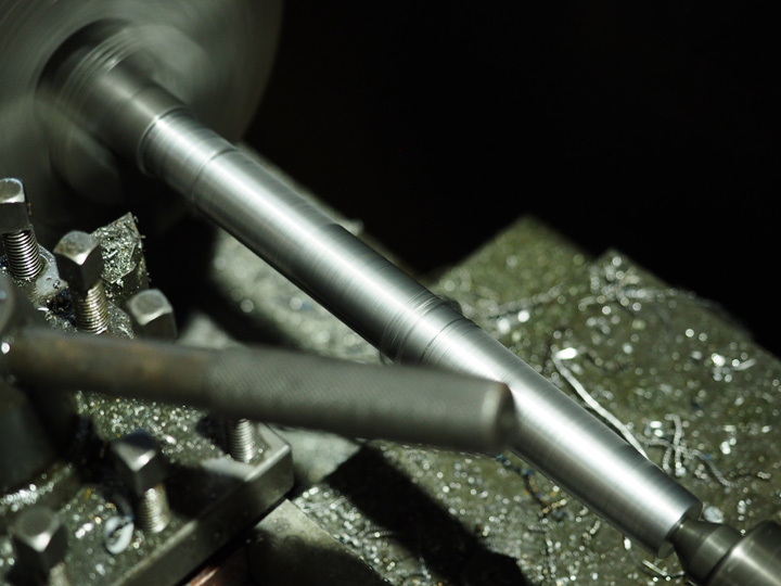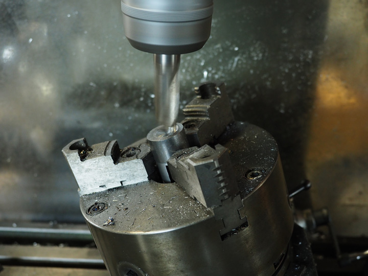 固定部分を旋盤とフライスで製作し、インデックスで角度を付けて穴をあけます。