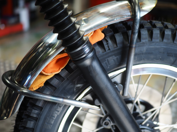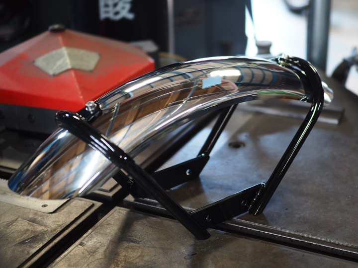 フロントは延長したフォーク、タイヤの外径に合わせて少しアップなフェンダーを製作します。