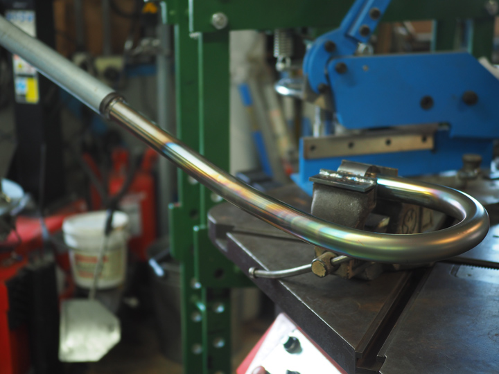 エキパイはステンレス38mmを使用し、180度手曲げします。